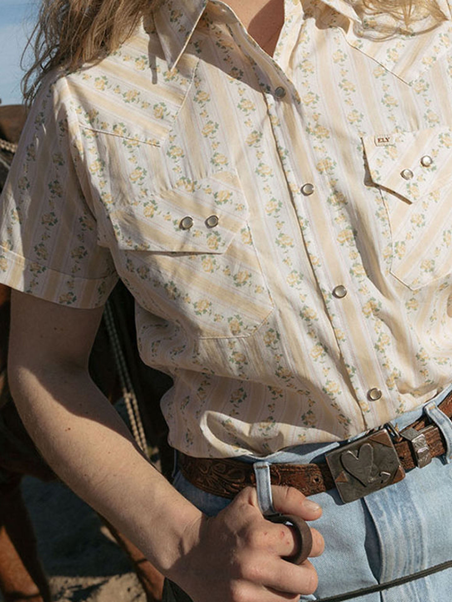 Built for girls that get the job done, this Cowboygirl Granddaddy Snap Shirt in Buttermilk Rose Print has all the features you need to rope that calf and look pretty in the saddle! With shirt tails long enough to stay tucked in, extra room in the bust & shoulder to swing a rope, and a pen hole in the pocket to keep count of cattle, this shirt is the perfect blend of functionality and beauty.