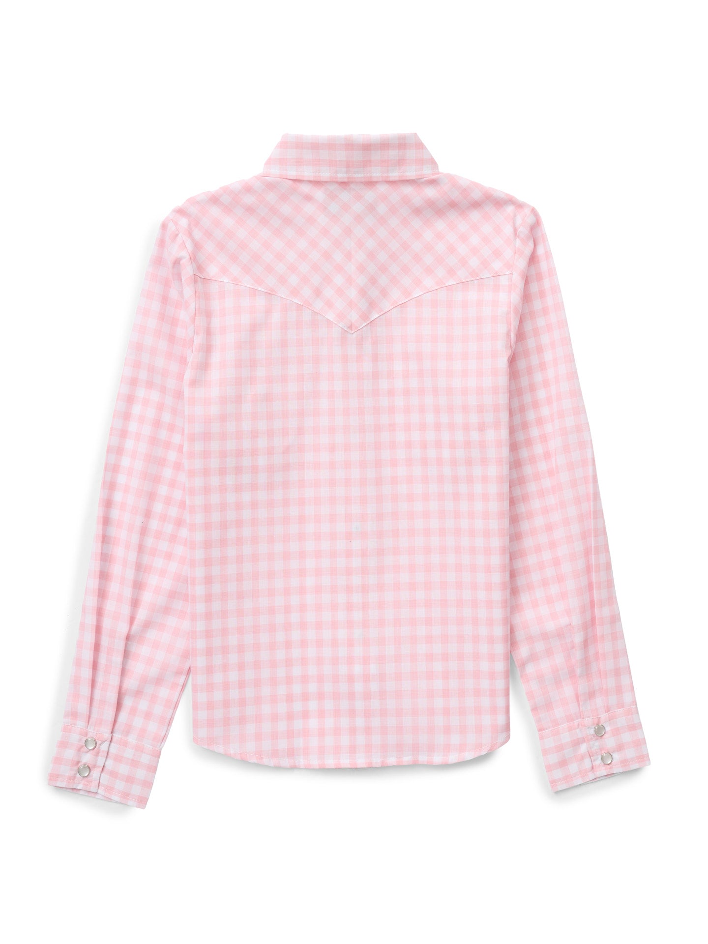 Built for little Cowboygirls, this Blossom Pink Gingham Girl's Snap Shirt is ready to be on the ground crew, get the gate, or tag along for the gather, all while looking pretty. Crafted in breathable lightweight poly/cotton, with western yokes, flap pockets, and pearl snaps, she will feel just like one of the big Cowboygirls!