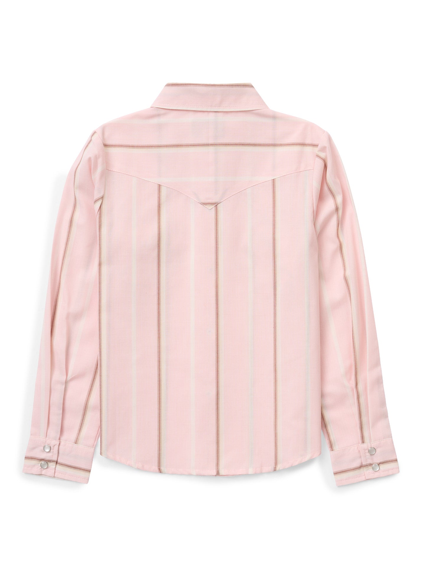 Built for little Cowboygirls, this Girl's Stripe Snap Shirt in Blossom Pink is ready to be on the ground crew, get the gate, or tag along for the gather, all while looking pretty. Crafted in breathable lightweight poly/cotton, with western yokes, flap pockets, and pearl snaps, she will feel just like one of the big Cowboygirls!