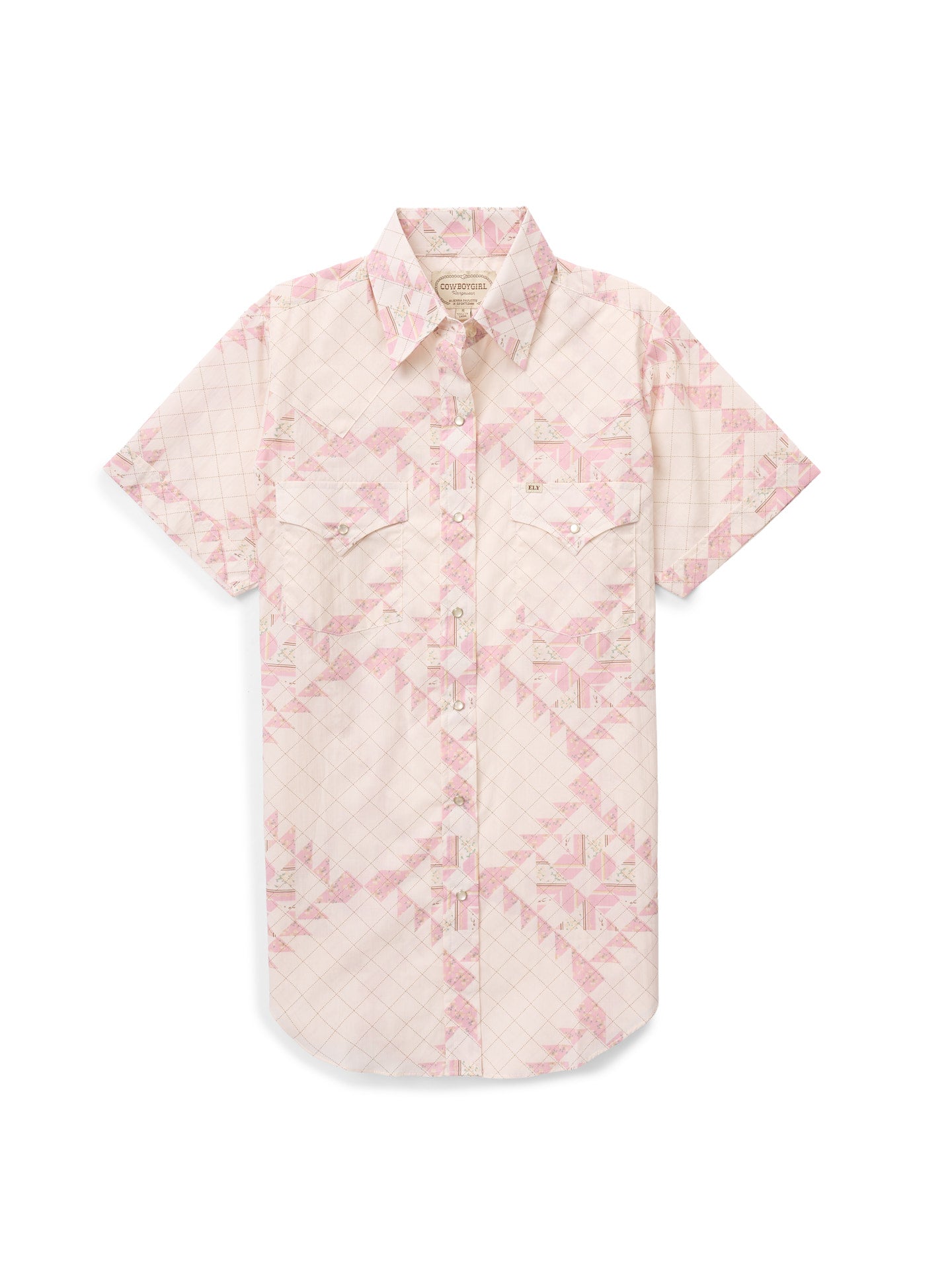 Built for girls that get the job done, this Cowboygirl Granddaddy Snap Shirt Blossom Pink Quilt Print has all the features you need to rope that calf and look pretty in the saddle! With shirt tails long enough to stay tucked in, extra room in the bust & shoulder to swing a rope, and a pen hole in the pocket to keep count of cattle, this shirt is the perfect blend of functionality and beauty.