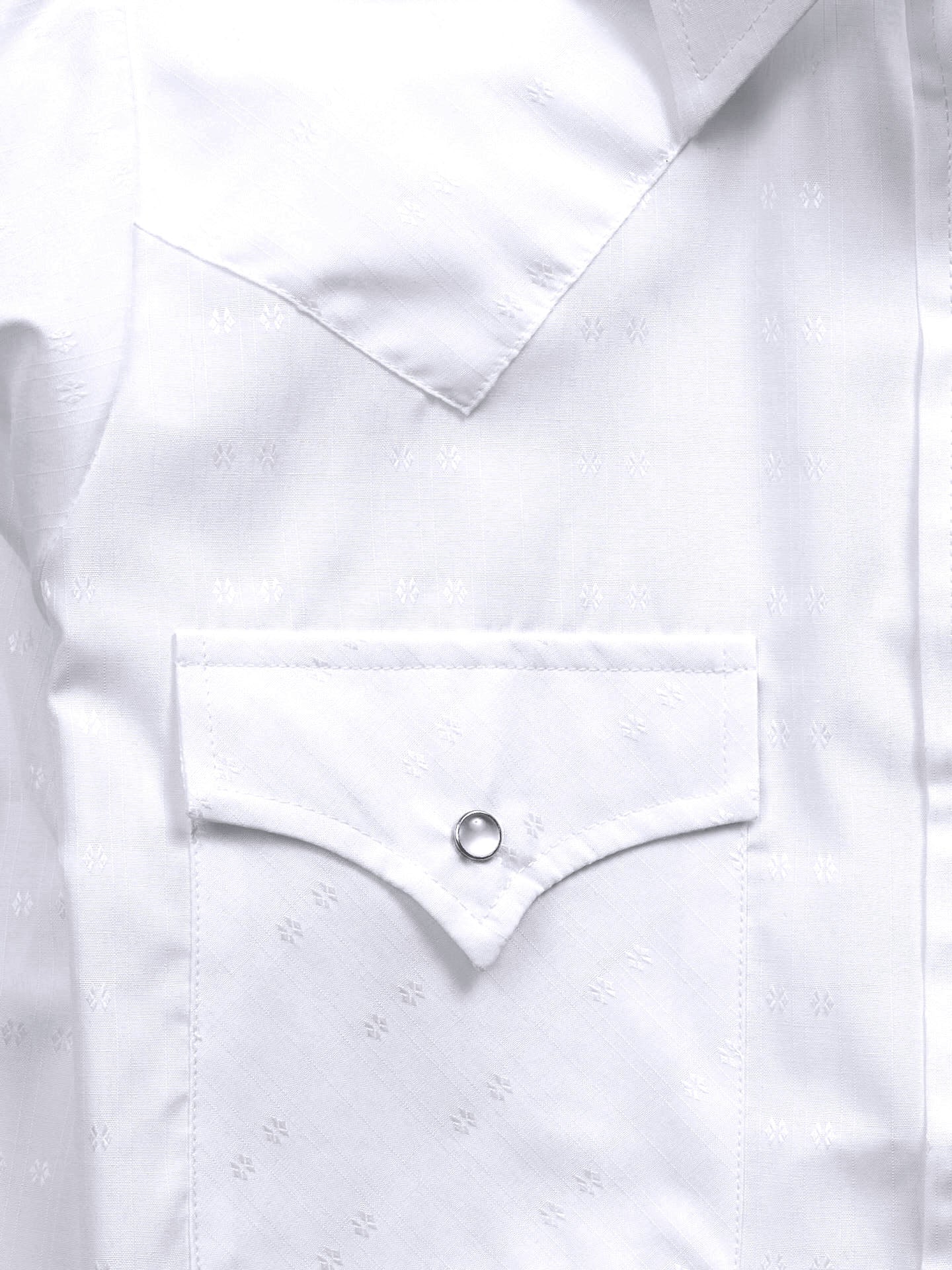 Built for girls that get the job done, this Cowboygirl Granddaddy Snap Shirt in White Tonal Solid has all the features you need to rope that calf and look pretty in the saddle! With shirt tails long enough to stay tucked in, extra room in the bust & shoulder, a longer sleeve to swing a rope, and a pen hole in the pocket to keep count of cattle, this shirt is the perfect blend of functionality and beauty.