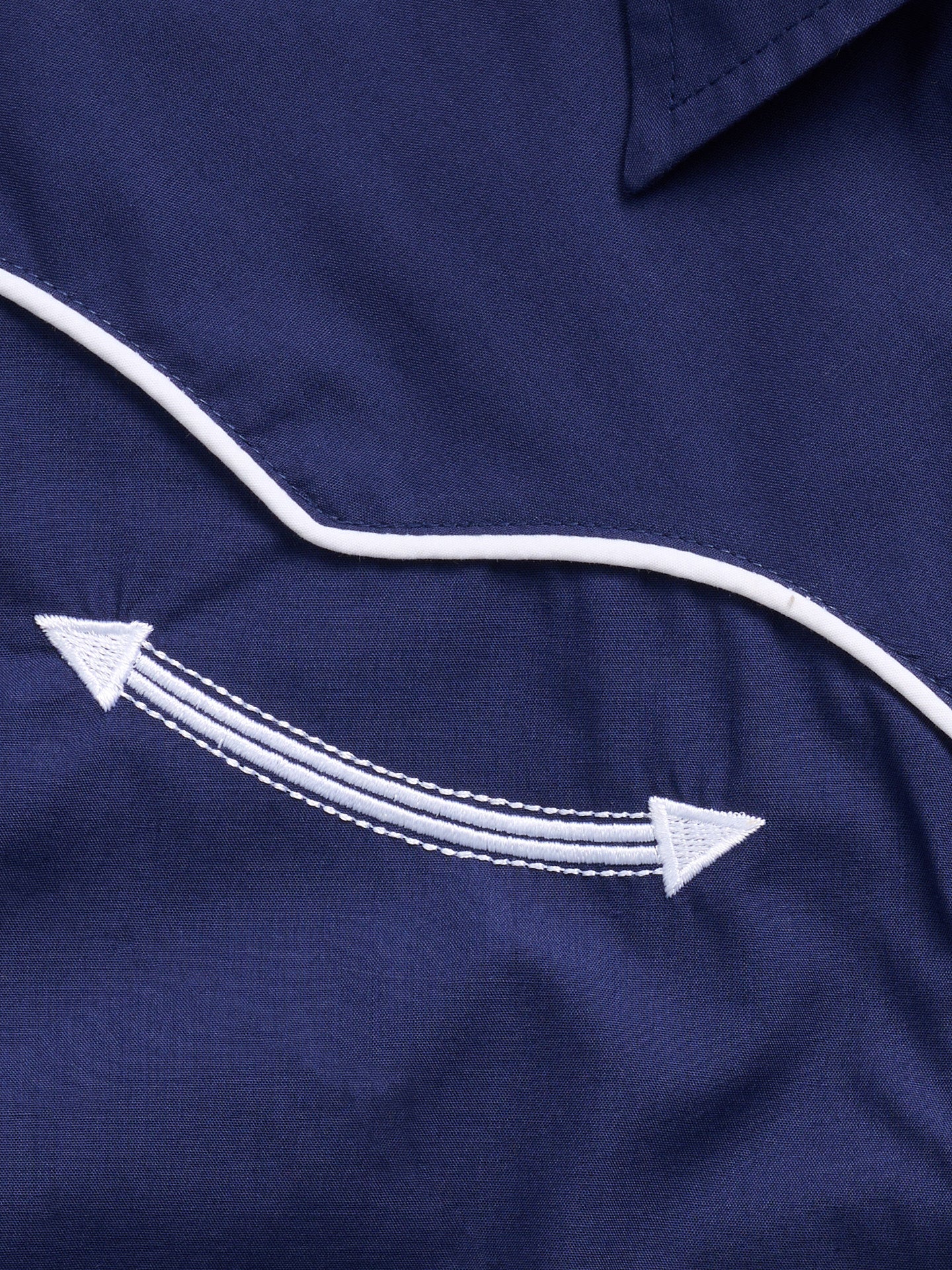 Sleek and stylish with a touch of western flair. This women’s long-sleeve snap shirt features a deep navy color accented by white embroidered arrow details across the chest. Designed with snap buttons and a classic western cut, it’s perfect for rodeo nights, concerts, or casual outings.